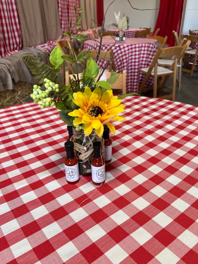 - custom centerpieces w/ flickering bonfire= $45/each