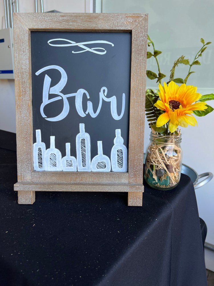 - Small (8″x11″) chalkboard w/ calligraphy = $40